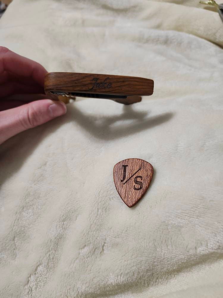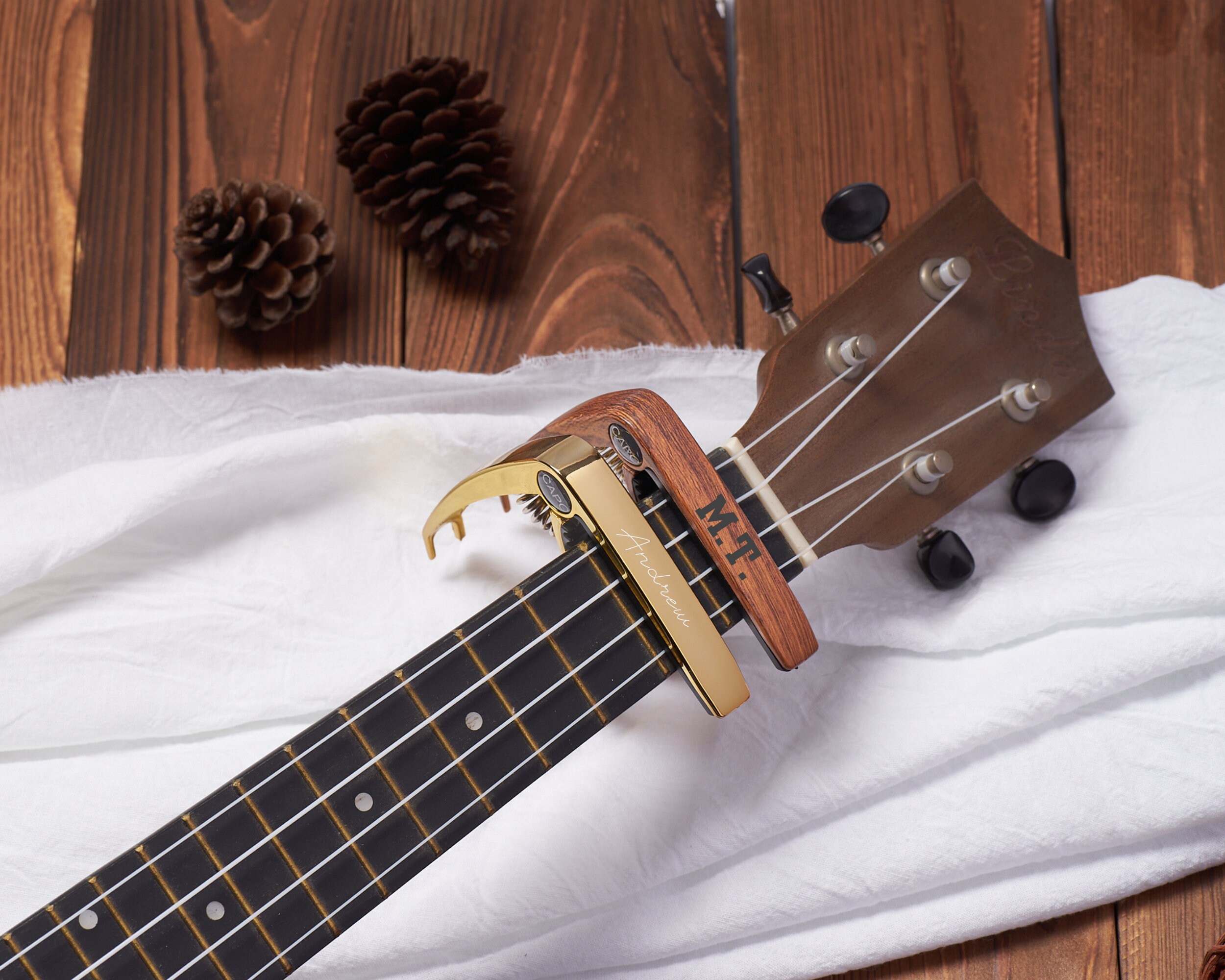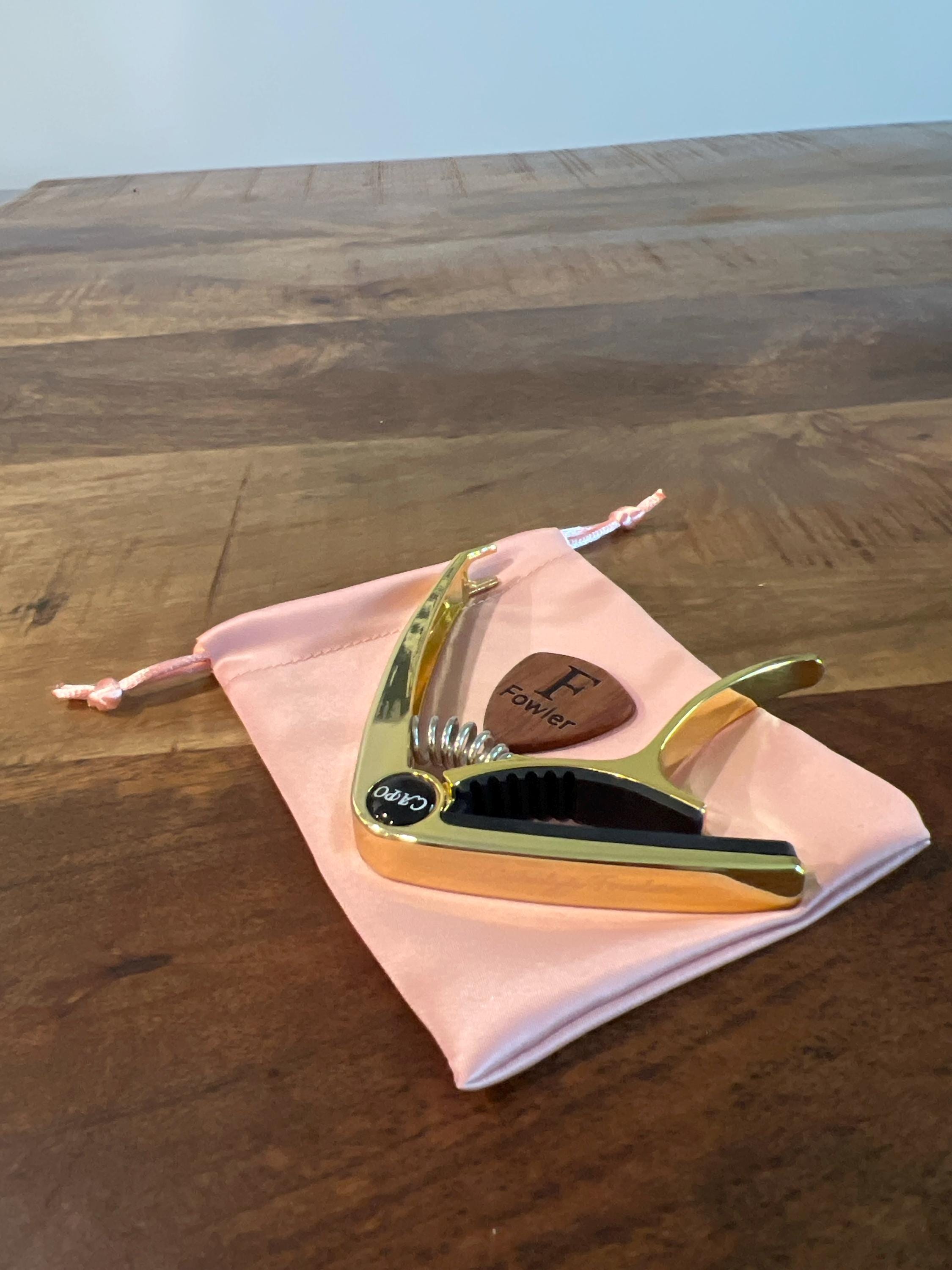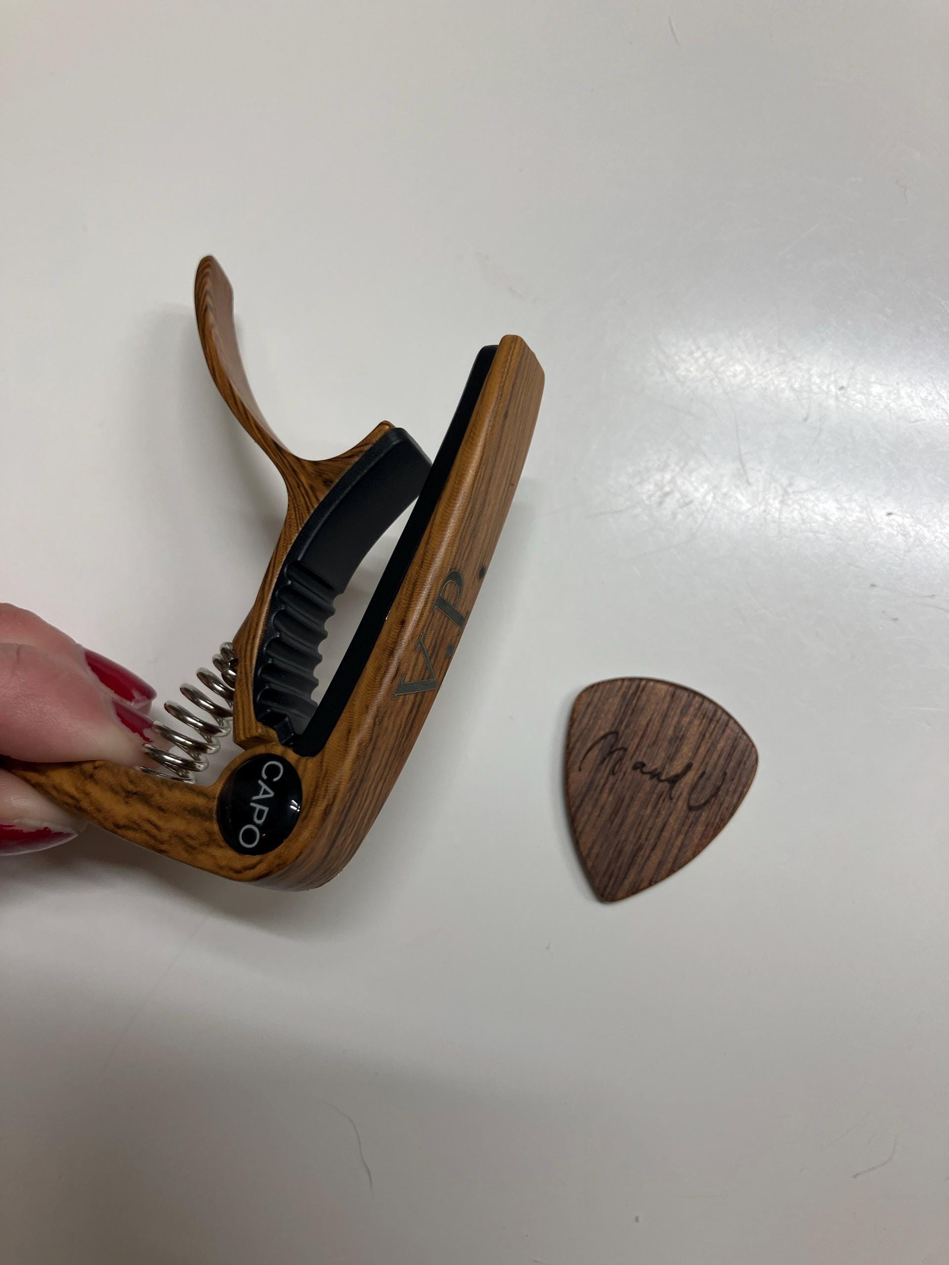 Unser personalisierter Gitarren-Capo eröffnet Ihnen neue musikalische Ausdrucksmöglichkeiten. Dieser Capo verbessert nicht nur den Klang Ihrer Gitarre, sondern verleiht ihr auch eine persönliche Note, da er auf Präzision und Langlebigkeit ausgelegt ist.