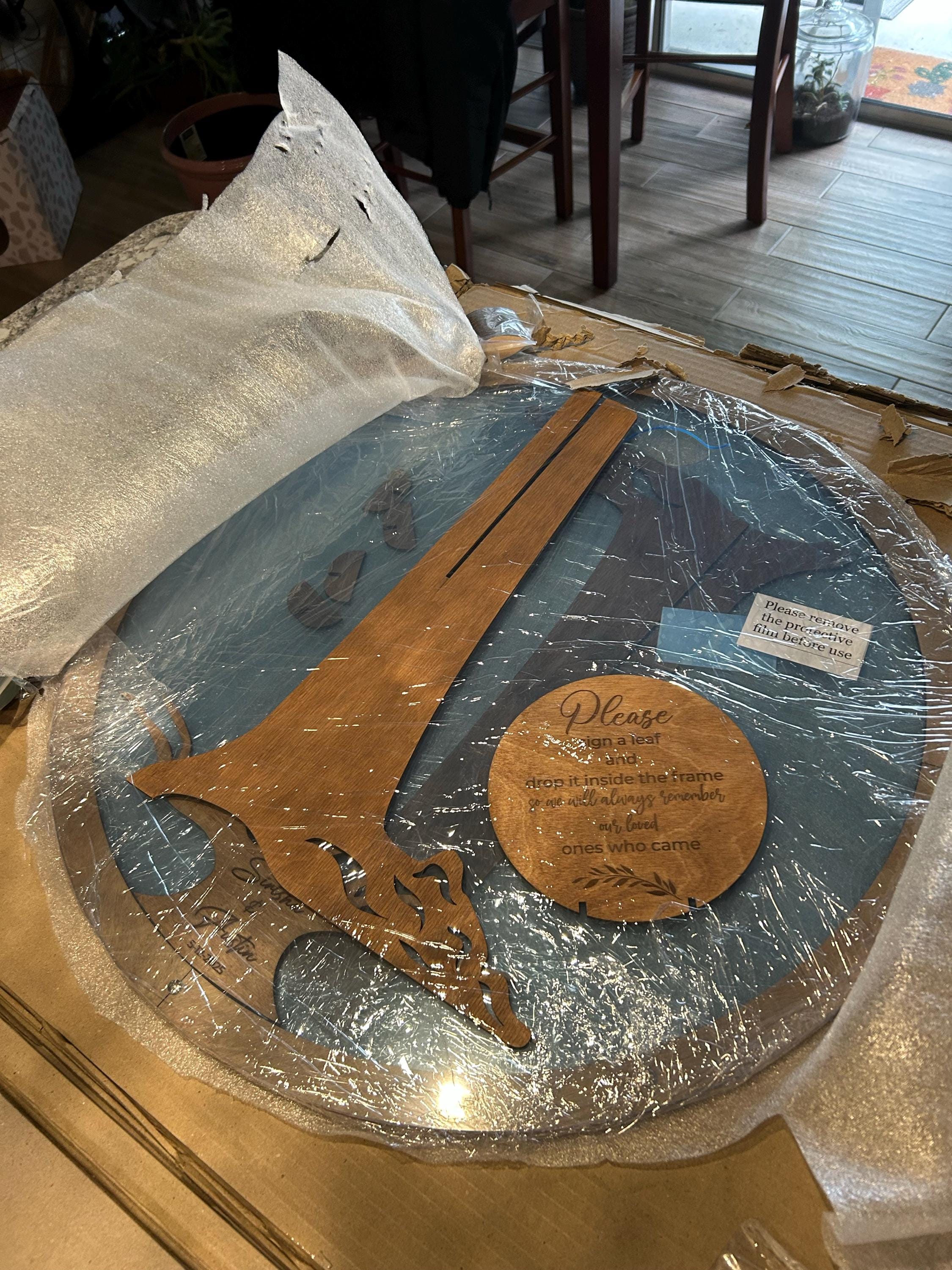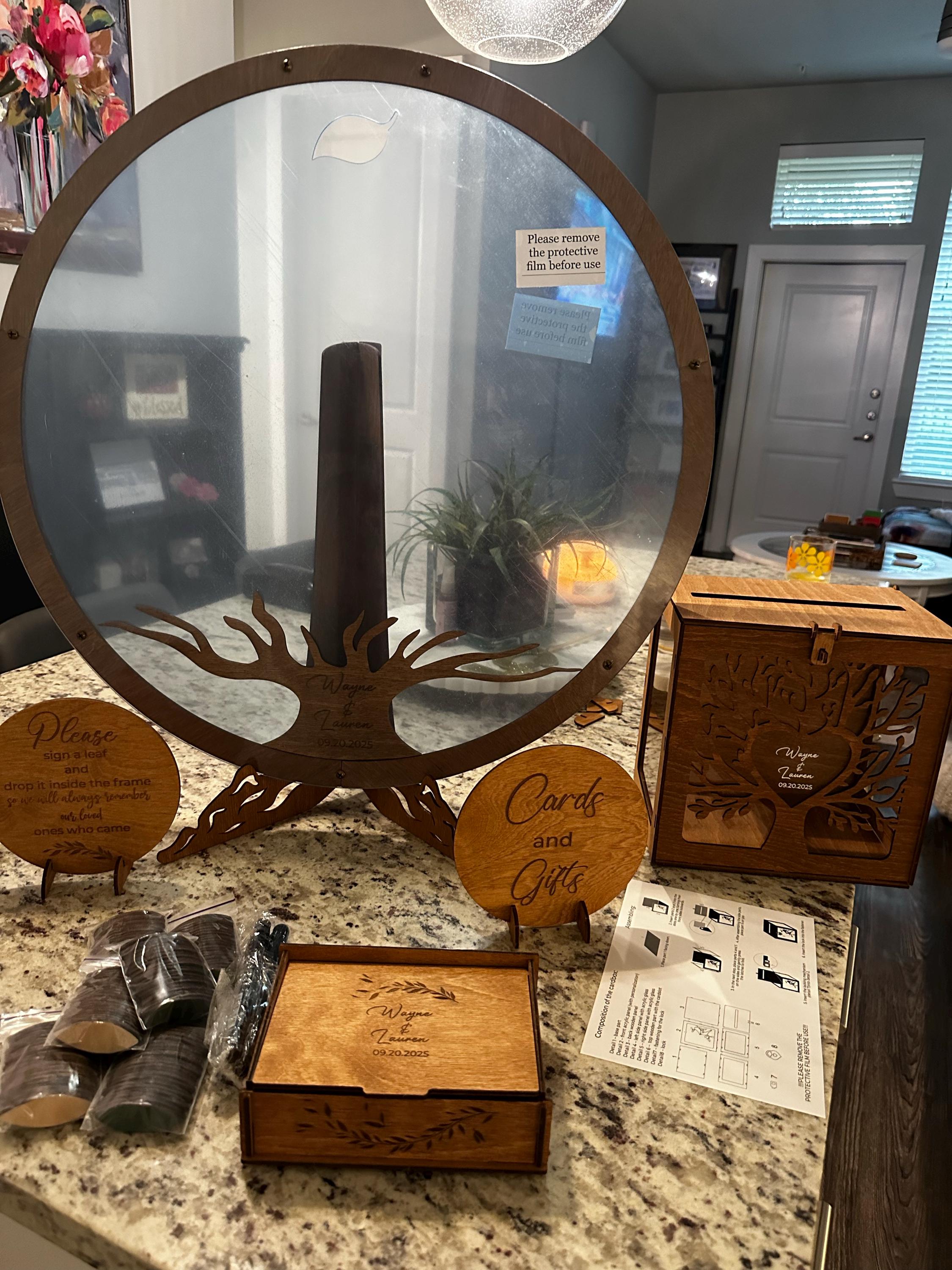 ?Und schließlich geben Sie im Personalisierungsfeld Folgendes ein: den Familiennamen, das Hochzeitsdatum, die Farbe (Holz geht, wenn nicht angegeben), die auf Foto 5 aufgeführte Designoption (1 geht, wenn nicht angegeben).