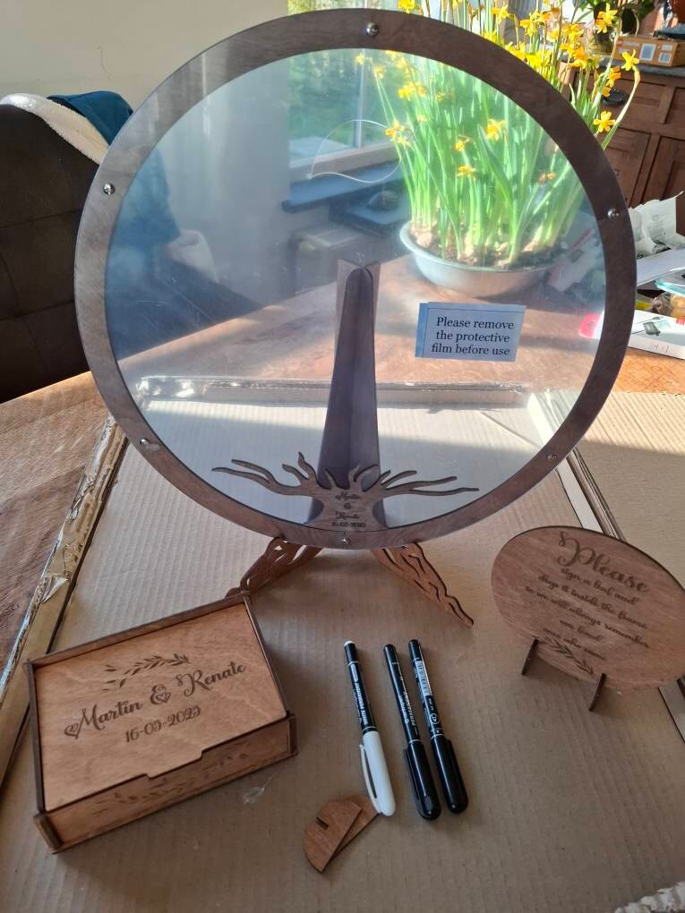 Unsere Schilder für Hochzeitsbriefkästen werden nach höchsten Qualitätsstandards gefertigt. Die Gästebuch-Alternative besteht aus hochwertiger baltischer Birke und Acrylglas. Sie werden dieses Stück sicher als Dekoration und Erinnerung an den Tag, an dem Ihr Abenteuer begann, bei sich zu Hause behalten wollen.