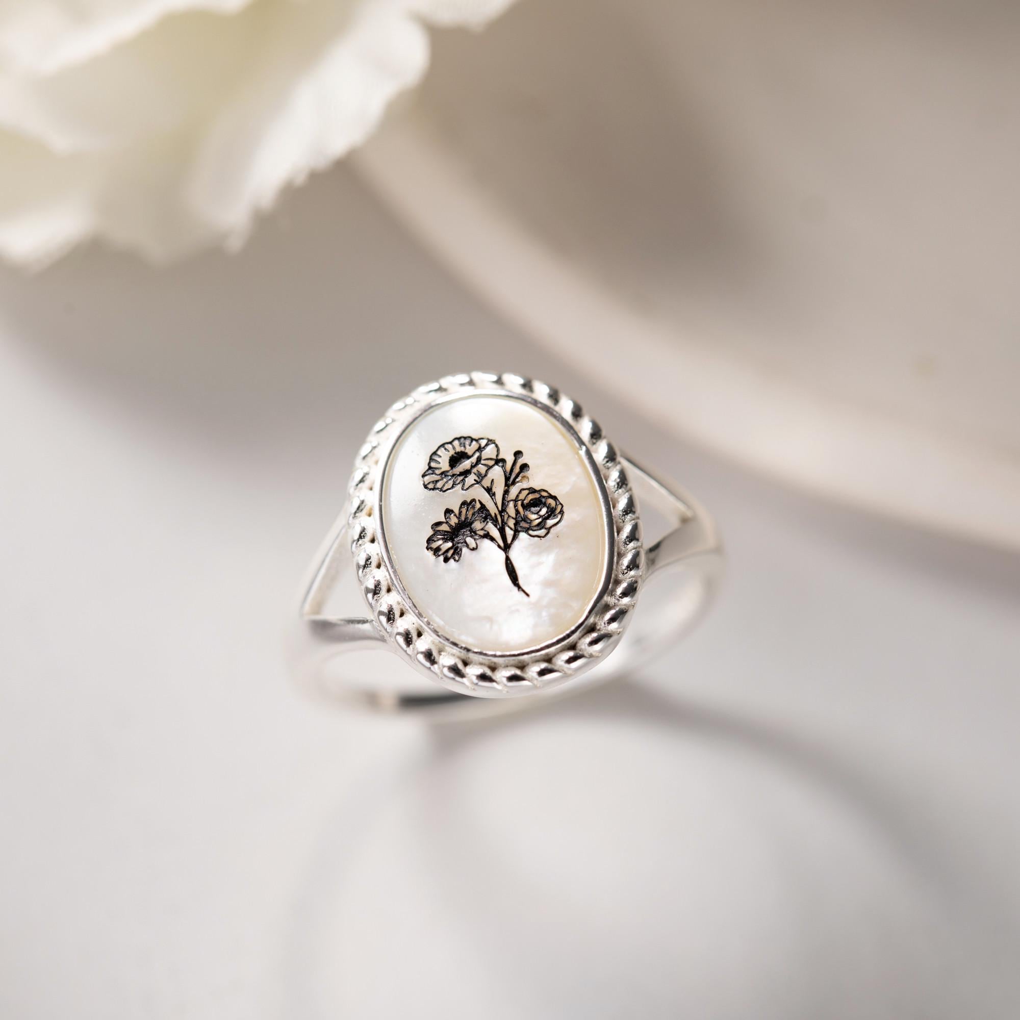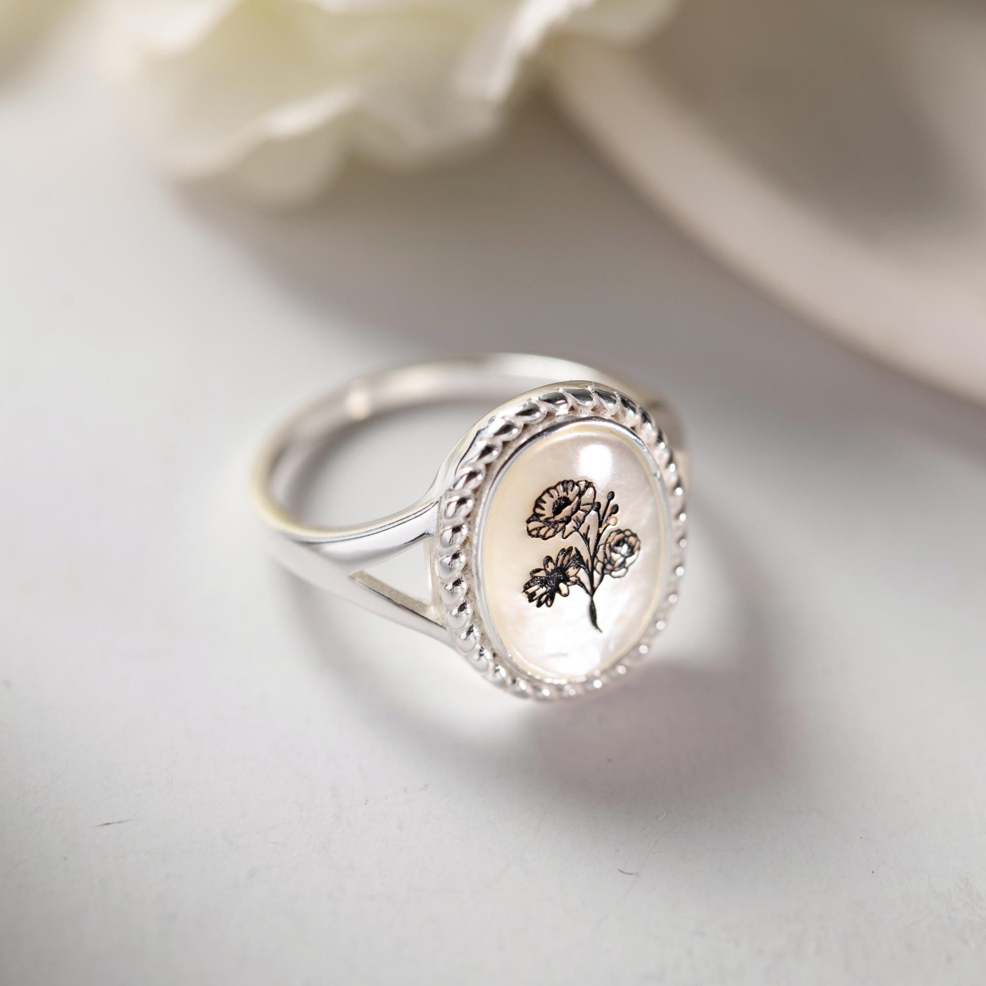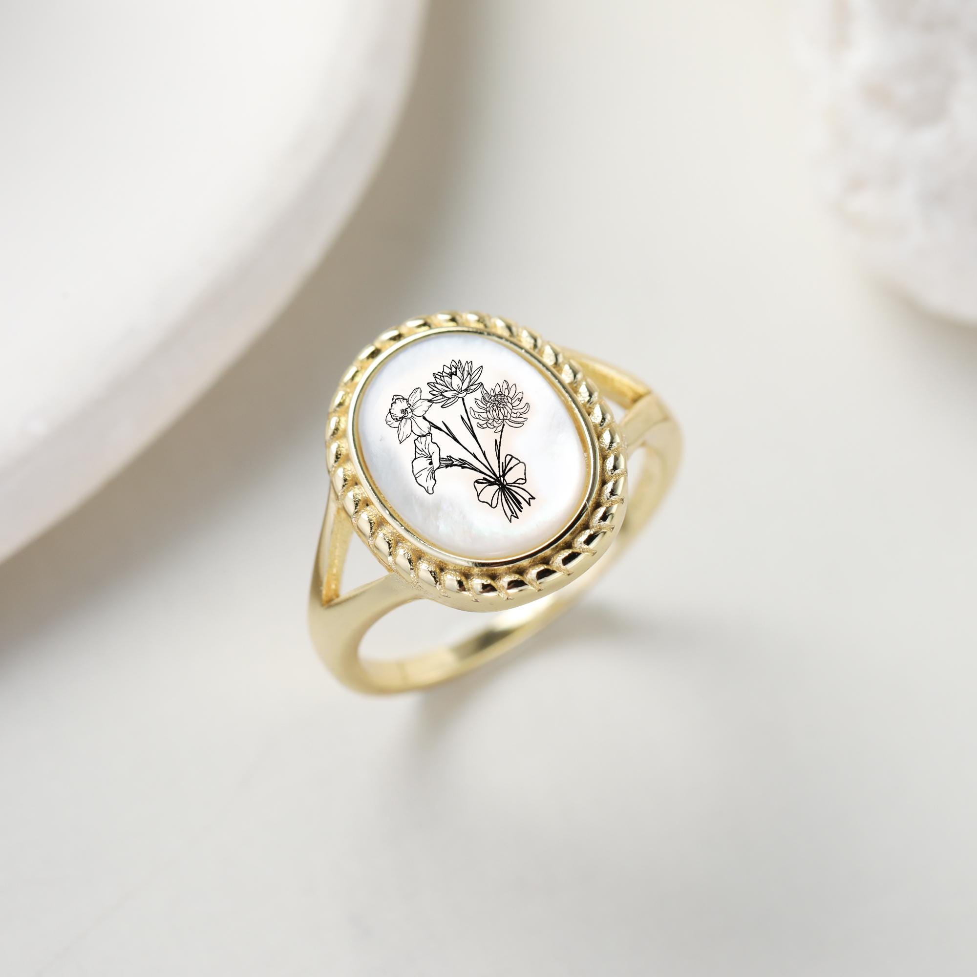 Unser personalisierter Geburtsblumenring ist das perfekte, trendige Geschenk für Ihre Mutter, Schwester, Großeltern, Brautjungfer oder enge Freundin. Jeder personalisierte Ring in Premiumqualität kann mit 1–5 Geburtsblumen personalisiert werden. Wir bieten 12 verschiedene Geburtsblumenarten an.