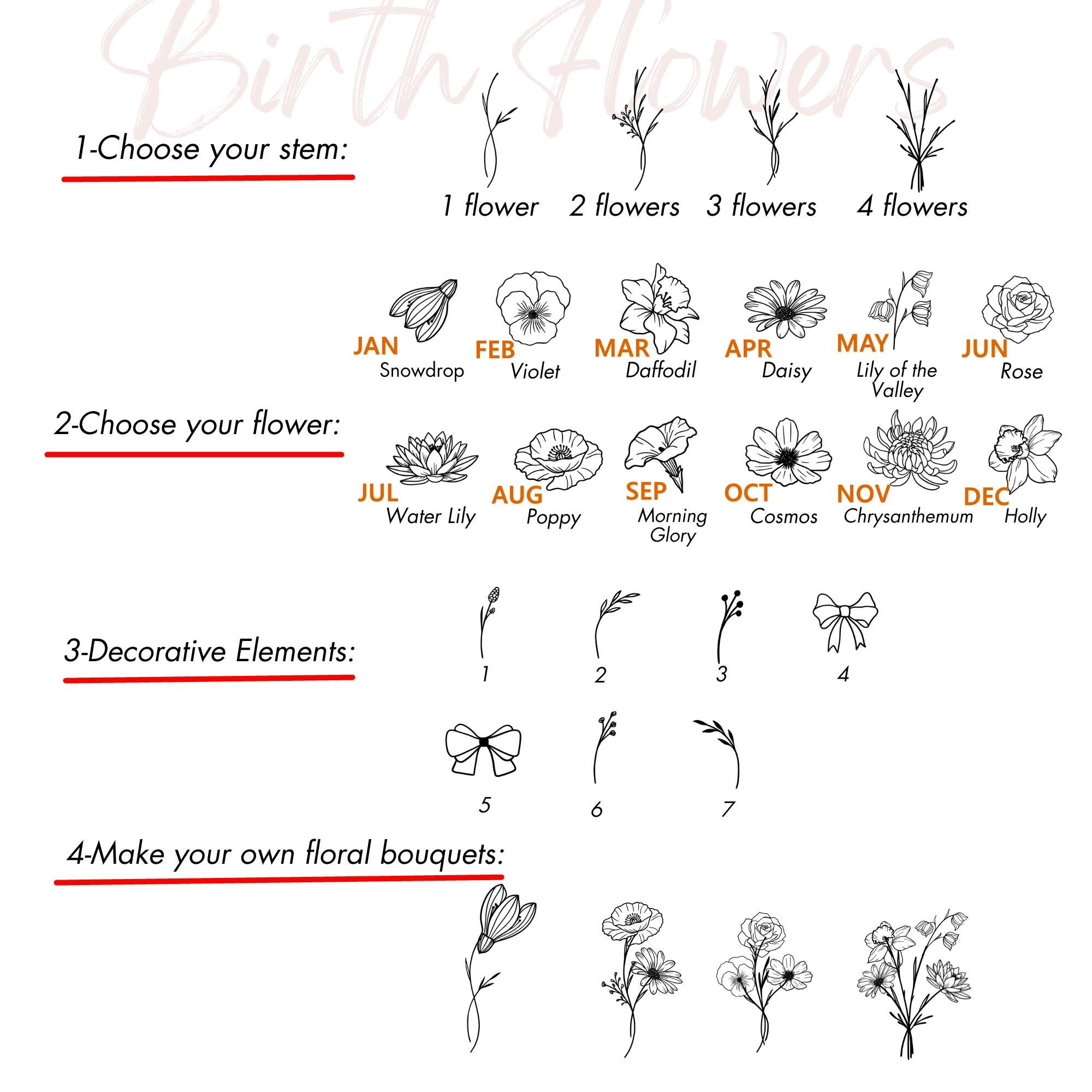 2. Fügen Sie die gewünschten Geburtsblumen (1–5 Blumen) in die personalisierte Box ein.
