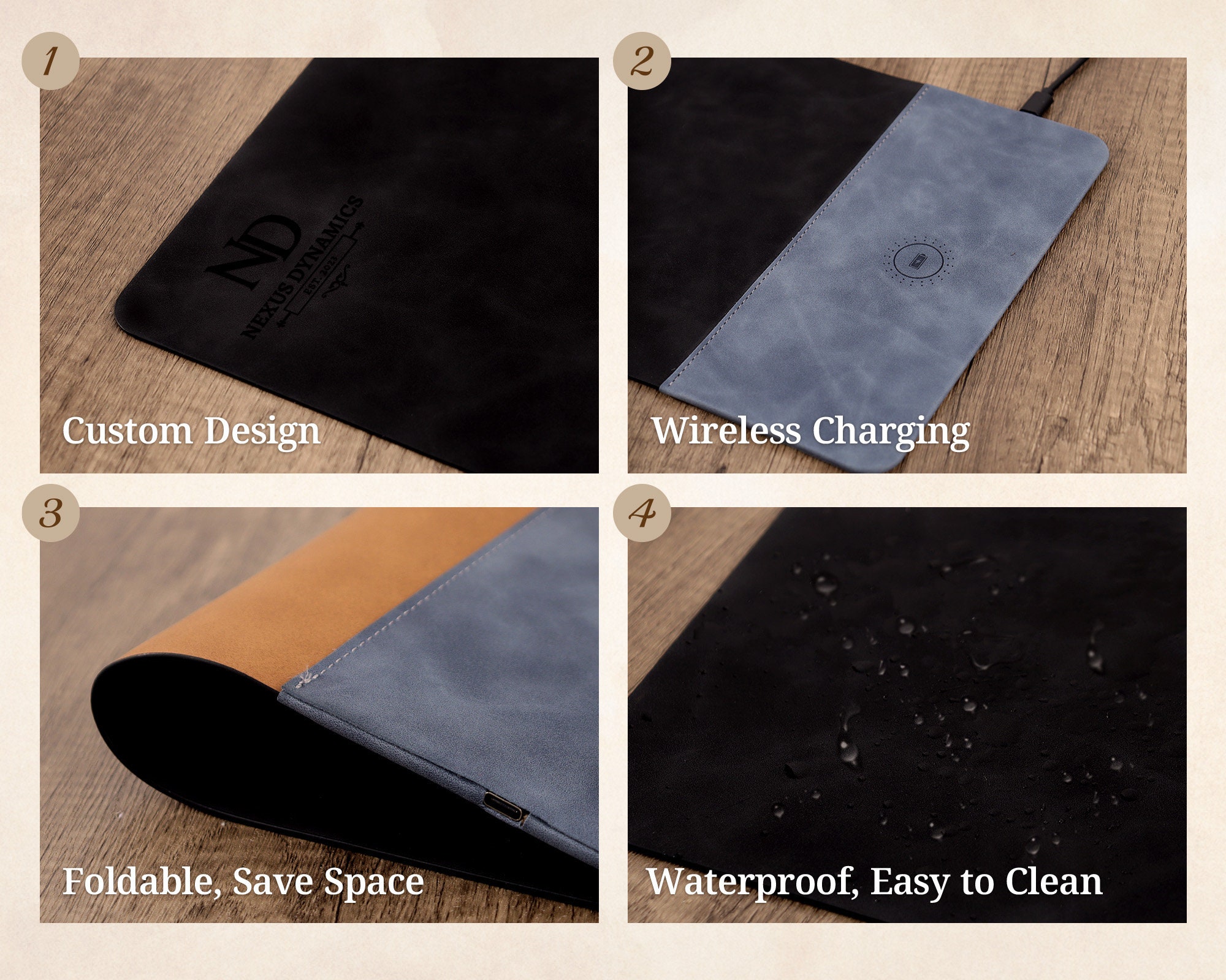 Wir präsentieren unser Leder-Mauspad – ein stilvolles und vielseitiges Accessoire, das Ihren Arbeitsplatz verschönert und Ihr Leben vereinfacht. Es vereint Funktionalität und Stil perfekt und ist ideal für alle, die Wert auf Komfort und Innovation legen.